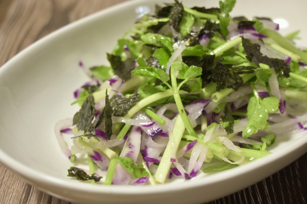 大根のシャキシャキ感とセリと海苔の組み合わせが美味しいサラダです。